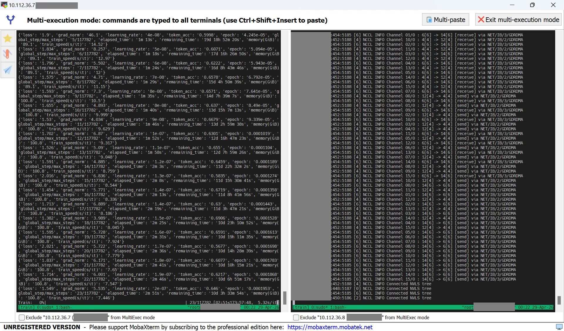 # 10.112.36.7 export NNODES=4 export NODE_RANK=0 export MASTER_ADDR=10.112.36.7 export MASTER_PORT=29500 # 10.112.36.8 export NNODES=4 export NODE_RANK=1 export MASTER_ADDR=10.112.36.7 export MASTER_PORT=29500 # 10.112.36.9 export NNODES=4 export NODE_RANK=2 export MASTER_ADDR=10.112.36.7 export MASTER_PORT=29500 # 10.112.36.10 export NNODES=4 export NODE_RANK=3 export MASTER_ADDR=10.112.36.7 export MASTER_PORT=29500