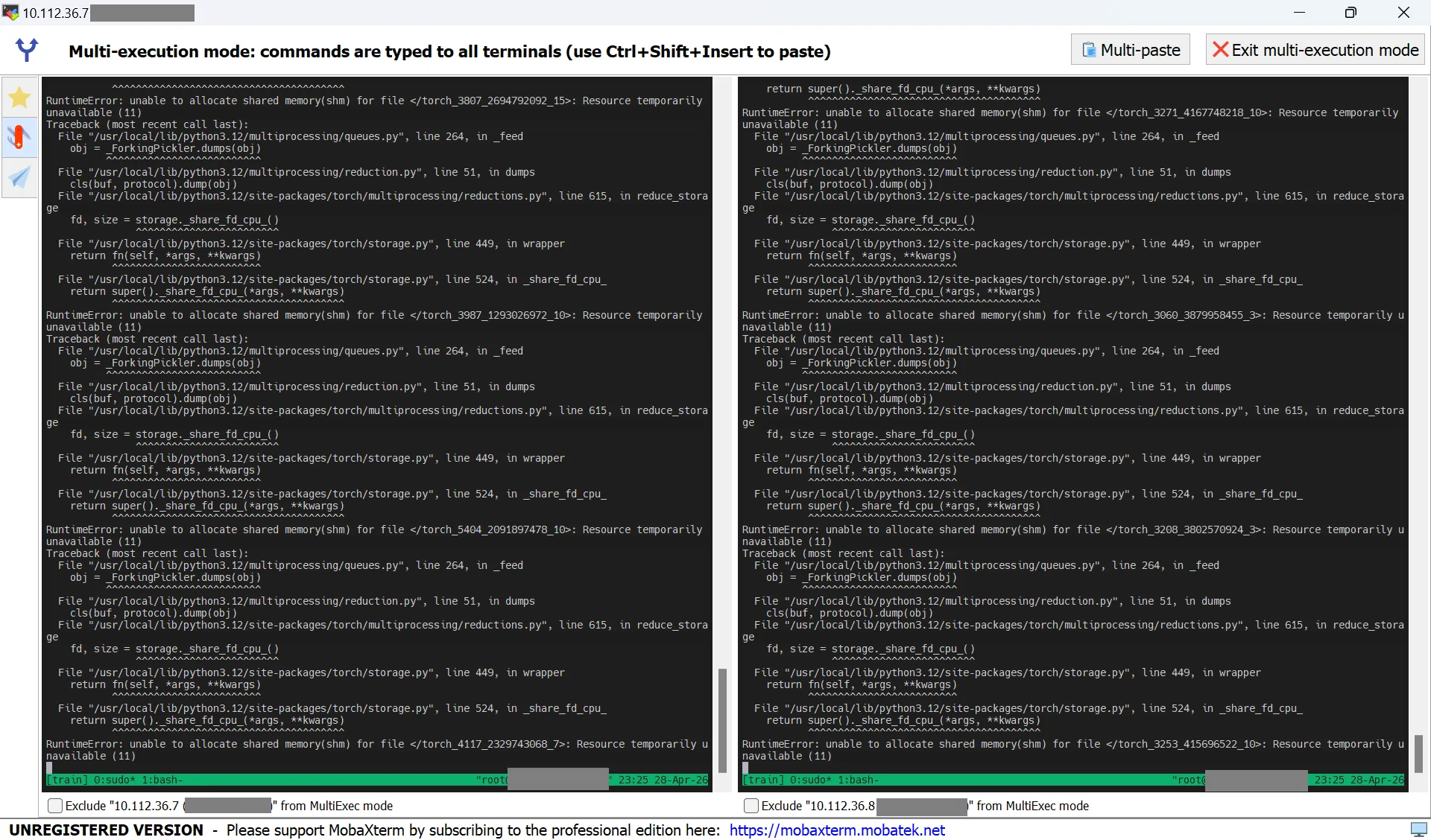 该问题在小规模测试时一般不会触发,但在正式训练时很可能就爆了,报错为 uable to allocate shared memory(shm),如图: