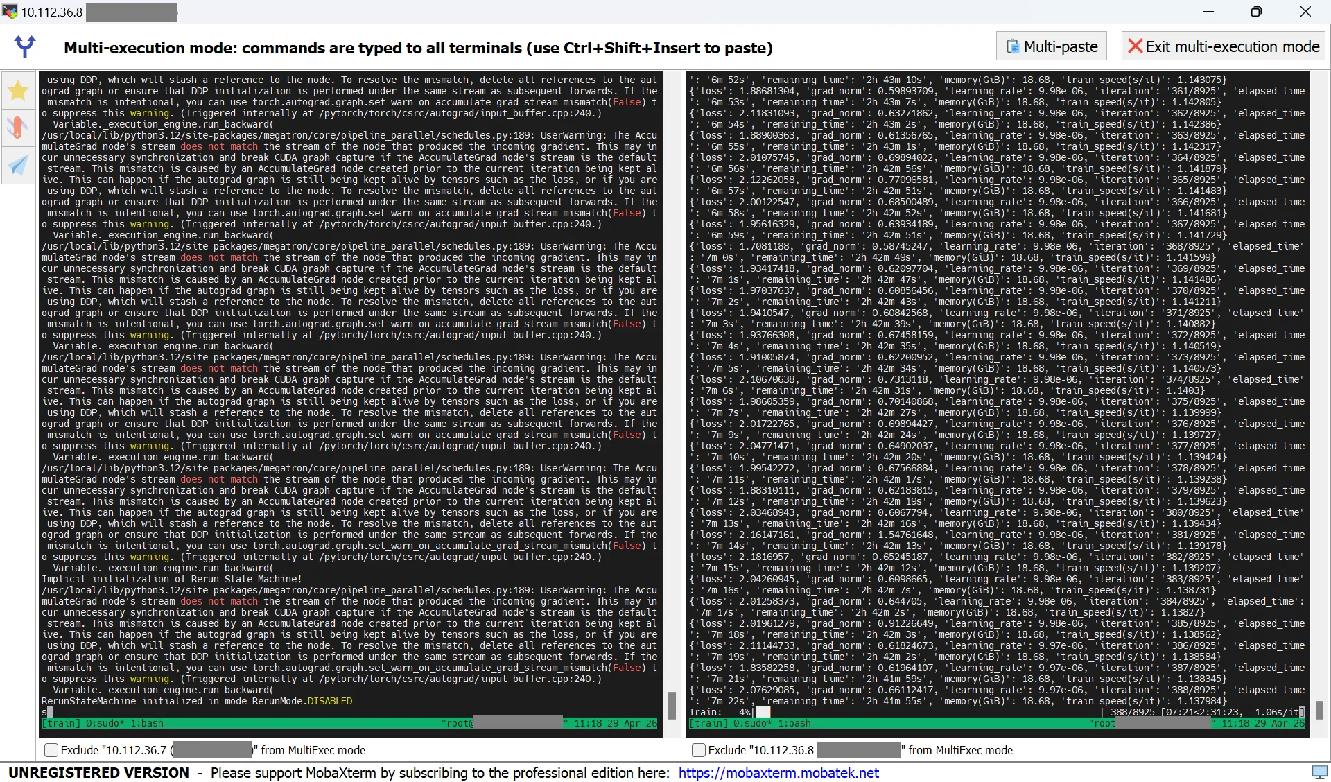 然后就可以开始训练了,多机并行的环境变量同第 1 章所述,训练的启动指令修改为如下: